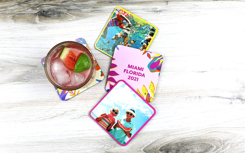 Choose multiple photos for a set of square coasters with cork back. Unisub coasters are made with a durable coating and are easy to wipe clean and store when not in use.