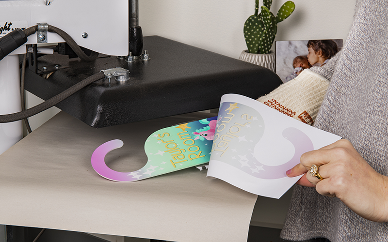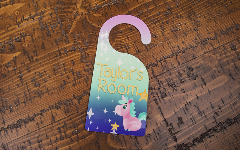 Learn to sublimate our two-sided door hanger. Perfect for a kid's room or playroom.