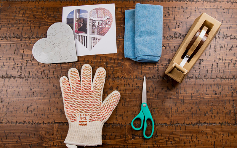 Remove the plastic wrap from the puzzle. Keep the cardboard piece on the bottom of your puzzle. This will help keep the puzzle together during sublimation and if you need to ship the puzzle later. Clean the exposed surface with a cleaning cloth, all-purpose cleaner, or a can of compressed air.