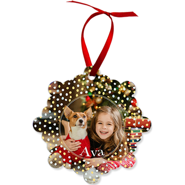 Our long lasting customizable ornaments make treasured keepsakes. These two-sided full-color aluminum ornaments include a red or white satin ribbon for hanging unless otherwise noted.