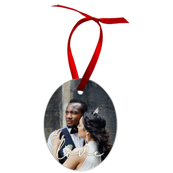 Our long lasting customizable ornaments make treasured keepsakes. These two-sided full-color aluminum ornaments include a red or white satin ribbon for hanging unless otherwise noted.